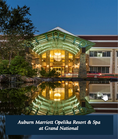 On par for comfort and convenience, Auburn Marriott Opelika Resort & Spa at Grand National provides 221 updated rooms and exceptional services. Facing Lake Saugahatchee, our hotel in Opelika offers easy access to nearby attractions. Perfect your swing at Robert Trent Jones Golf Trail, featuring three courses with 54 holes, scenic views, driving ranges, putting greens and golf lessons. Tour Auburn University, catch a game at Jordan Hare Stadium or shop in downtown Opelika. After your Alabama outing, explore everything within our hotel. We house resort-style pools with bar service, as well as 8 tennis courts, 13 meeting rooms and an award winning Spa. Settle into our modern accommodations featuring locally inspired décor, private balconies and marble bathrooms. Complimentary Wi-Fi and spacious work desks are also included, allowing you to finish up daily tasks.