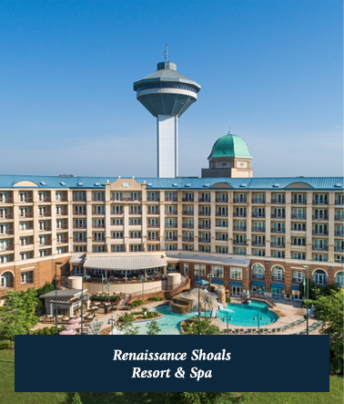 Take center stage at the new Renaissance Shoals Resort & Spa, located in the Muscle Shoals Area of Northwest Alabama. Every inch of the resort has been thoughtfully curated to showcase the area’s music heritage and fully immerse you in the place that Keith Richards called “rock ‘n’ roll heaven”. Guests are transported through an incredible journey throughout their stay experiencing evening rituals and mixing with the local neighborhood while enjoying live music in Swampers Bar & Grille, where you may just sit next to a Grammy Award winner. Expect the unexpected at Renaissance Shoals taking in the stunning lake views from the guest rooms, relax poolside on one of the pool decks or cabanas, Spa at the Shoals takes guests to another level of relaxation in the full service spa with infrared saunas and true relaxation areas, and top it off with a decadent dining experience in 360 Grille the state’s only revolving restaurant. For groups looking for that one of a kind, unique event, Renaissance Shoals has over 34,000 square feet of meeting space both indoors and outdoors with sophisticated venues, catering options and planning services.